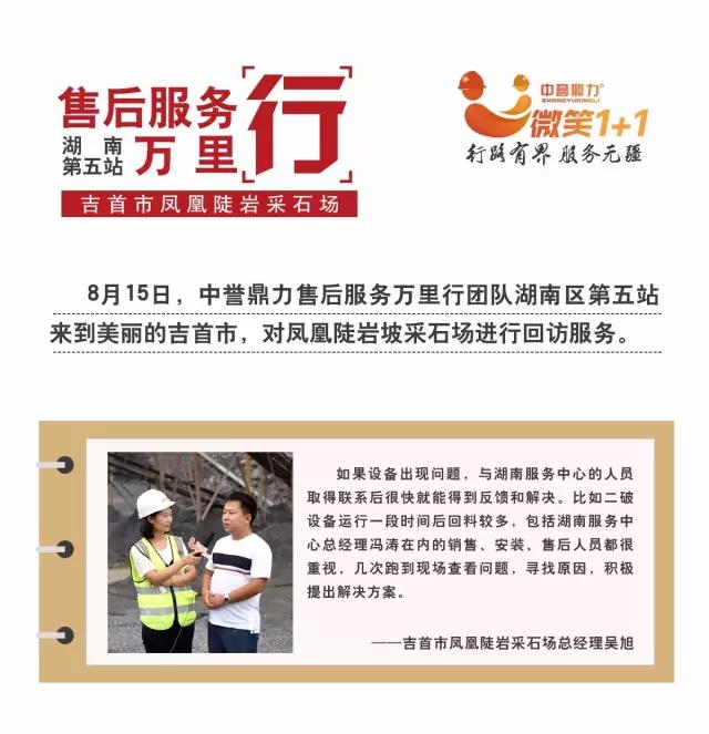 當(dāng)問到對(duì)鼎力湖南服務(wù)的工作有什么意見時(shí),負(fù)責(zé)人吳旭表示,如果設(shè)備出現(xiàn)問題,與湖南服務(wù)的人員取得聯(lián)系后很快就能得到反饋和解決。比如二破設(shè)備運(yùn)行一段時(shí)間后回料較多,包括湖南服務(wù)總經(jīng)理馮濤在內(nèi)的銷售、安裝、售后人員都很重視,幾次跑到現(xiàn)場(chǎng)查看問題,尋找原因,積提出解決方案。