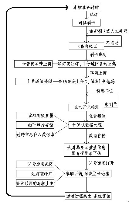 RFID卡自動(dòng)稱重系統(tǒng)自動(dòng)識(shí)別車輛車牌號(hào)碼,方便快捷。要求:場(chǎng)內(nèi)對(duì)車輛管理較嚴(yán)格,車牌的完整度和清潔度。過磅原理流程如下: