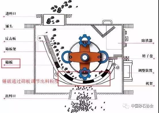 錘式破碎機(jī)調(diào)節(jié)出料粒度只能通過更換底部篩板實(shí)現(xiàn)。