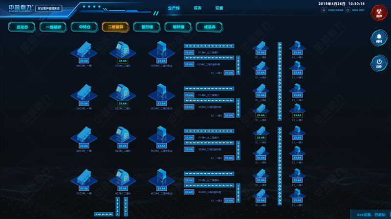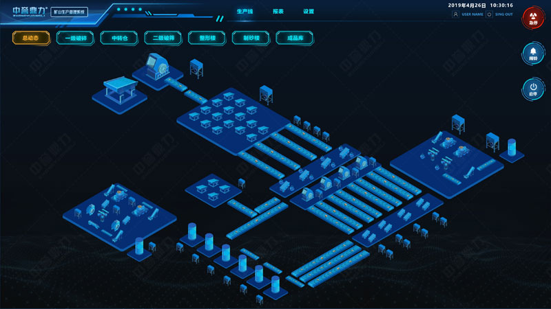 中譽鼎力礦山生產(chǎn)管理系統(tǒng)(又叫DCS超級中控系統(tǒng)),是為實現(xiàn)礦山智能化、自動化生產(chǎn)而開發(fā)的可視化生產(chǎn)管理系統(tǒng)。