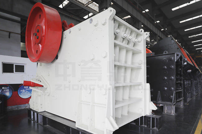 電機帶動皮帶跟皮帶輪,通過偏心軸讓動顎進行上下運動,當(dāng)動顎上升的時候,肘板會和動顎之間的夾角變大,從而推動動顎板往固定顎板接近,同時其中的物料會被壓碎或劈碎,達到破碎的目的,當(dāng)動顎下行時,肘板和動顎之間的夾角會變小,動顎板在拉桿、彈簧的作用下 ,離開固定顎板,同時已經(jīng)破碎的物料從排料口排出。