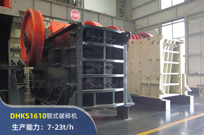 DHKS1610顎式破碎機進料口尺寸400×250mm,進料粒度210mm,出料大小20-30mm,電機功率為15kw,時產(chǎn)在7-23噸。