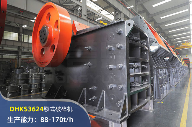 DHKS3624顎式破碎機進料口尺寸920×600mm,進料粒度510mm,出料大小65-130mm,電機功率75kw,時產(chǎn)可達170噸左右。