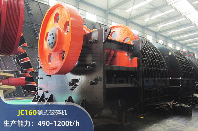 JC160顎式破碎機進料口尺寸在1600×1200mm,進料粒度≤1020mm,出料大小≤150mm,電機功率250kw,時產(chǎn)量在1200噸左右。