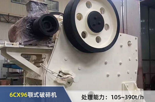 6CX96歐版顎式破碎機時產(chǎn)量105-390噸,進料口尺寸930×580mm,排料范圍60-175mm之間,配置75或90kw的電機,轉(zhuǎn)速是300r/min,設備總重量是17.3噸。