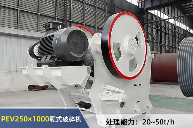 250×1000破碎機這里指PEV250×1000顎破,其出料粒度在25-50mm,每小時處理能力在20-50噸,同PEX250×1000細碎鄂破機一樣能做二破,用于細碎加工。