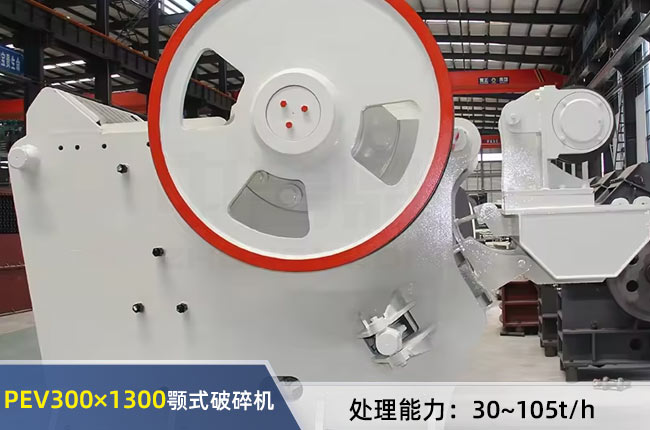300×1300破碎機是PEV系列顎破機中的一種,允許進料粒度要小于250mm,出20-90mm的砂石料,一小時產(chǎn)量在30-105噸之間,可以配置55或75千瓦的電機,機器重量有11噸,外形長2150mm,寬2390mm,高1590mm。
