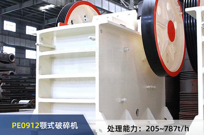 PE0912顎式破碎機(jī)給料口尺寸是870×1200mm,出料口尺寸70-175mm,每小時生產(chǎn)能力在205-787噸,配置的是160千瓦的電機(jī),設(shè)備重量是29.5噸。