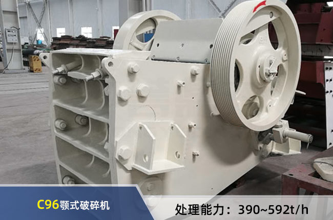 c96破碎機(jī)指C96顎式破碎機(jī),其給料口寬深尺寸是930mm×580mm,排料口尺寸可調(diào)范圍在60-175mm,較大排料口條件下每小時(shí)產(chǎn)能范圍在390-592噸。