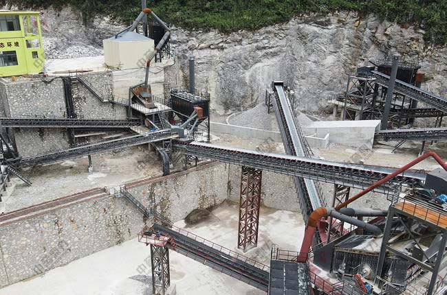 設(shè)備配置:DLZGC2050振動給料機、DLEV200顎式破碎機、HGC600M臥式旋回破碎機、3YKZ3680振動篩、輸送機。