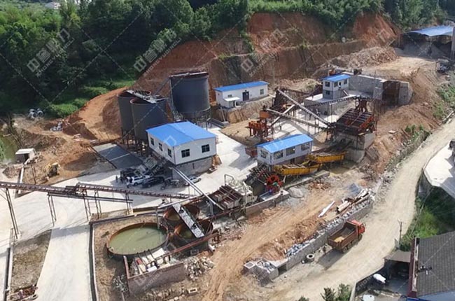 設(shè)備配置:振動(dòng)給料機(jī)、錘式破碎機(jī)、雙腔硬巖破碎機(jī)、振動(dòng)篩、洗砂機(jī)等