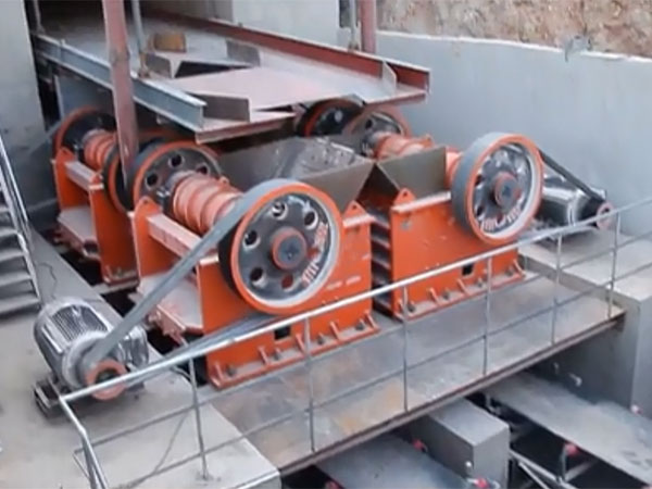 年產(chǎn)50萬(wàn)噸,采用PE600×900顎式破碎機(jī)+4臺(tái)PEX250×1000細(xì)碎鄂破+VSI7611沖擊式制砂機(jī)+配套設(shè)備方案,適用于鵝卵石等硬巖破碎,因投資預(yù)算不高,故中細(xì)碎設(shè)備采用細(xì)碎鄂破機(jī),如預(yù)算充足,可以直接采用一臺(tái)圓錐破碎機(jī)。