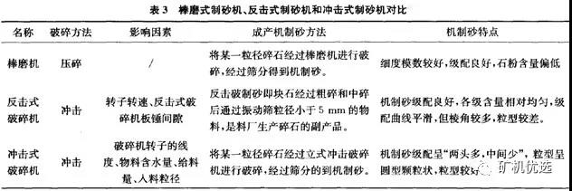 制砂機械一般采用棒磨機、反擊式制砂機或沖擊式制砂機,三者的性能見下表:(點擊圖片放大查看)