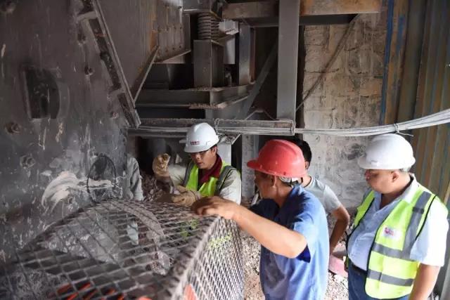現(xiàn)場(chǎng),鼎力安裝工程師、銷售經(jīng)理、售后服務(wù)經(jīng)理了解到該生產(chǎn)線的產(chǎn)量沒(méi)有達(dá)到設(shè)備時(shí)產(chǎn)量時(shí),立即開(kāi)始檢測(cè)設(shè)備、查找原因。經(jīng)過(guò)查看用戶的破碎原材料,發(fā)現(xiàn)原材料里含有硅巖,加劇了破碎機(jī)錘頭磨損程度,進(jìn)而影響產(chǎn)量。建議在破碎前將硅巖層剝離掉,避免錘頭磨損嚴(yán)重的情況再次出現(xiàn)。