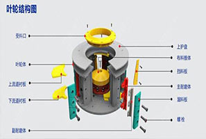 物料由機器上部垂直進入高速旋轉的葉輪內,在高速離心力的作用下,和另一部分以傘形式分流在葉輪四周的物料產(chǎn)生高速撞擊與粉碎,物料在撞擊后,又會在葉輪和機殼之間以物料形成渦流多次之間而粉碎,達到粉碎要求會從下部排出。