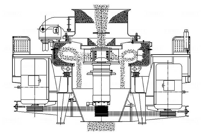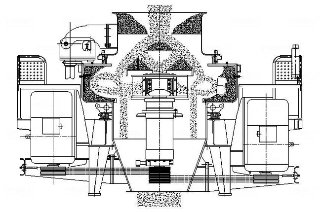 沖擊整形制砂機(jī)給石子整形,多采用“石打石”破碎方式,破碎腔中安裝的是擊打護(hù)板,物料會和甩輪射出物料相互撞擊,不會與沖擊整形制砂機(jī)的金屬件接觸,生產(chǎn)出來的石料粒型好。