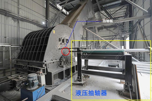 中譽鼎力1512錘破設(shè)計有擋軸板結(jié)構(gòu),可以通過液壓抽錘軸裝置,快速更換錘頭,省時省力,簡單方便。
