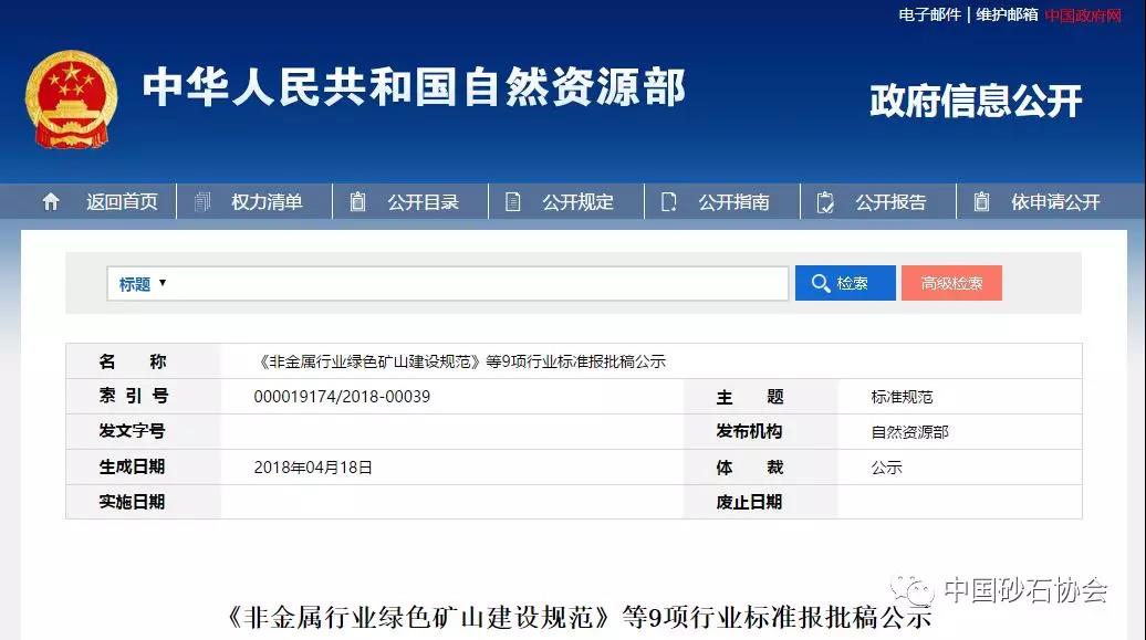按照土資源行業(yè)制定程序要求和計(jì)劃安排,土資源部組織有關(guān)單位制定了性行業(yè)《砂石行業(yè)綠色礦山建設(shè)規(guī)范》、《非金屬行業(yè)綠色礦山建設(shè)規(guī)范》、《化工行業(yè)綠色礦山建設(shè)規(guī)范》、《黃金行業(yè)綠色礦山建設(shè)規(guī)范》、《煤炭行業(yè)綠色礦山建設(shè)規(guī)范》、《石油行業(yè)綠色礦山建設(shè)規(guī)范》、《水泥灰?guī)r綠色礦山建設(shè)規(guī)范》、《冶金行業(yè)綠色礦山建設(shè)規(guī)范》、《有色行業(yè)綠色礦山建設(shè)規(guī)范》,現(xiàn)已通過(guò)土資源化技術(shù)委員會(huì)審查,現(xiàn)予公示。