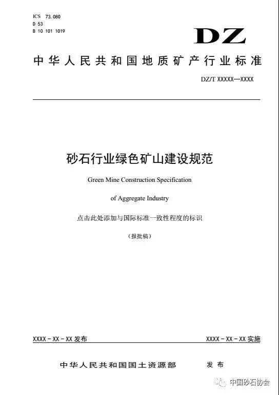 按照土資源行業(yè)制定程序要求和計(jì)劃安排,中砂石協(xié)會(huì)組織編制的《砂石行業(yè)綠色礦山建設(shè)規(guī)范》報(bào)批稿已通過(guò)土資源化技術(shù)委員會(huì)審查,現(xiàn)予公示。同時(shí)進(jìn)行公示的還有《非金屬行業(yè)綠色礦山建設(shè)規(guī)范》等,共9項(xiàng)行業(yè)報(bào)批稿。
