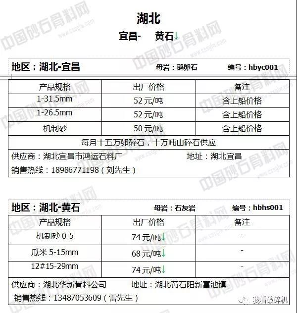 湖北地區(qū):黃石砂石價格下調2元/噸。