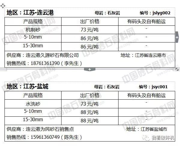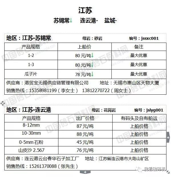 江蘇地區(qū):蘇錫常砂石價格普遍下調2元/噸,連云港砂石價格相對持平,可能會有1元/噸左右的波動幅度。