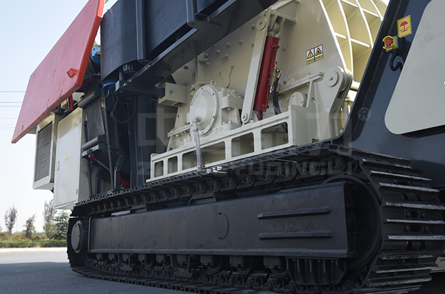 履帶式移動(dòng)破石機(jī):履帶底盤機(jī)架,會(huì)對(duì)路面造成損壞,不適合長距離運(yùn)輸,但履帶抓地力強(qiáng),可以爬坡,能適應(yīng)各種復(fù)雜、惡劣的環(huán)境?捎糜诘V石、尾礦的破碎。