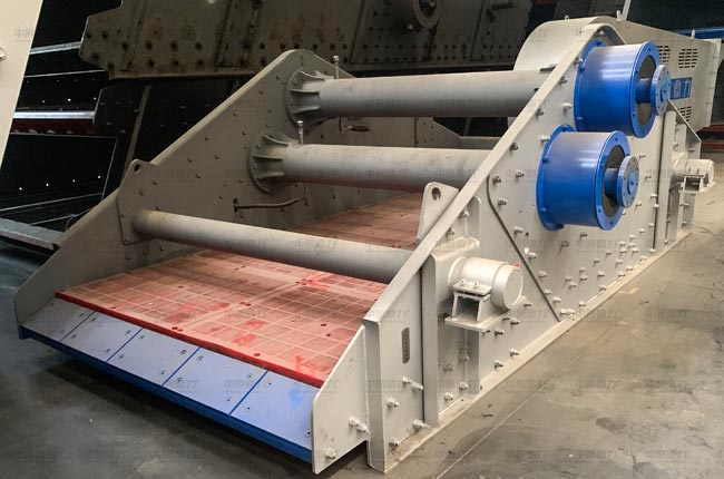 主要由篩箱、箱式激振器、支撐系統(tǒng)及電機組成,通過膠帶聯(lián)軸驅動箱式激振器,箱式激振器內部齒輪作同步反向運轉,兩組偏心質量產(chǎn)生的離心力沿振動方向的分力疊加,反向離心抵消,從而形成單一的沿振動方向的激振動,使篩箱做往復直線運動。