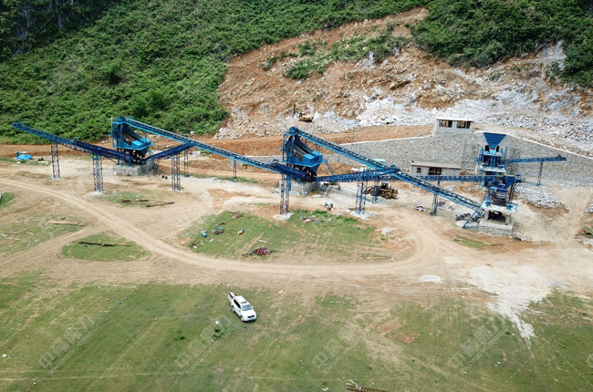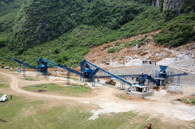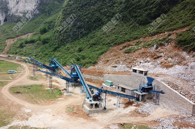 該項目位于廣西馬山縣,是一條新建的時產(chǎn)400-500噸的石料生產(chǎn)線,主要生產(chǎn)石灰石骨料,供南桂高鐵馬山段使用。