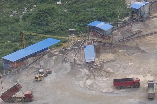 該項目建于2016年,使用了PCZ1615、XPC1213錘式破碎機、3YKZ3070圓振動篩等礦山設備,主要生產功率用石,生產料類包括10-20mm、10-30mm、石粉等五種。
