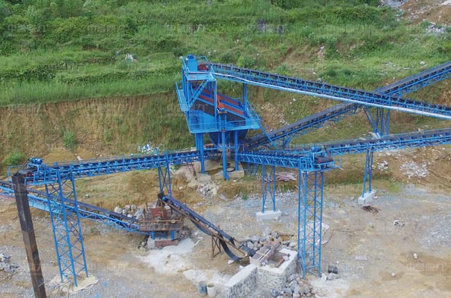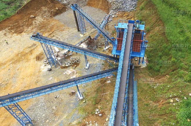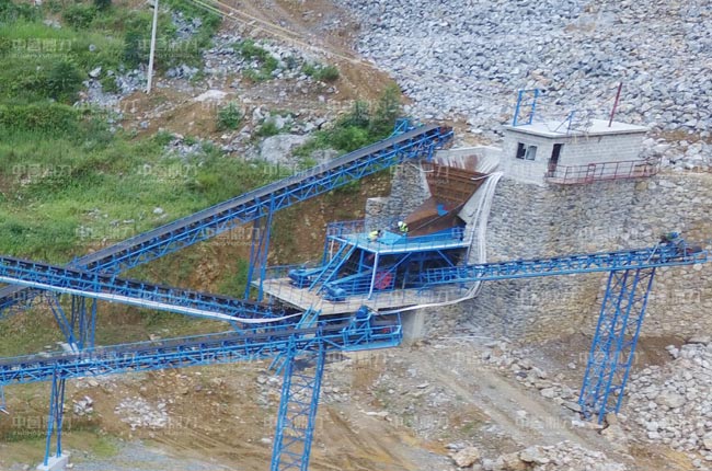 石灰?guī)r物料硬度不高,采用PCZ1512重錘式破碎機,時產(chǎn)量250-320噸,一次破碎成型,不需要二級設(shè)備的投資,從PCZ1512重錘式破碎機破碎出來的物料可直接進(jìn)篩機篩分出3種不同規(guī)格的成品石料。此種工藝配置簡單,投資小。