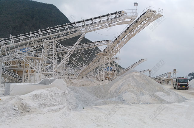 這條日產一萬噸石子生產線位于貴州都勻市惠水縣,由河南中譽鼎力承建并提供設備,2017年正式投產,主要生產各類石子、機制砂等砂石料,設備配置合理,一小時的產量在1000噸左右。