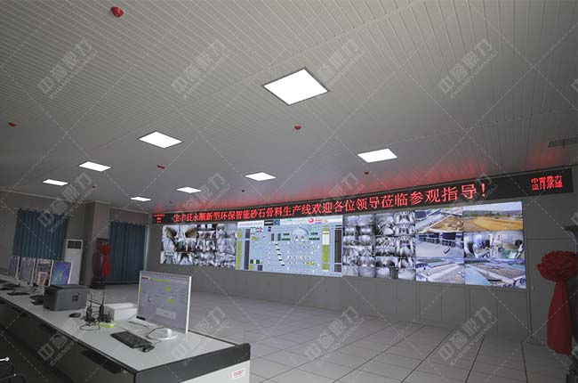 中控室(設(shè)備運(yùn)行狀態(tài)、砂石骨料裝車、稱重等監(jiān)控LED大屏展示)
