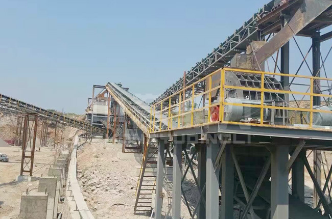 該項(xiàng)目17年投產(chǎn),選用的是DLPCZ1820重錘式破碎機(jī)、DL3YKZ3070振動篩、給料機(jī)等設(shè)備,生產(chǎn)線可對800mm以下的石灰石原料原料進(jìn)行粗細(xì)碎加工,成品料用于建筑、筑路等域。
