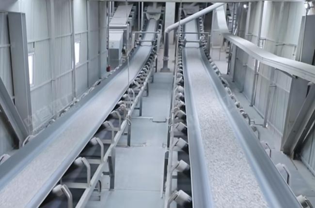 皮帶機(jī)進(jìn)入罐倉(cāng)(5000噸/個(gè)),某種成品料滯銷時(shí),通過庫(kù)下皮帶機(jī),轉(zhuǎn)存到成品緩沖倉(cāng),成品緩沖倉(cāng)下面有一個(gè)通廊,也可以已實(shí)現(xiàn)自動(dòng)裝車。