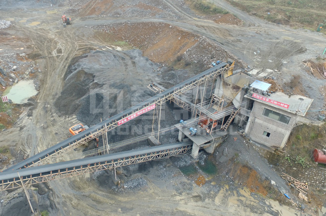 此項目建設較早,為2013年建設并投產(chǎn),是一條露天石灰?guī)r破碎加工生產(chǎn)線,通過現(xiàn)場實拍圖片可以看出,生產(chǎn)線是由喂料設備、錘式破碎機、振動篩、皮帶機組成。這個生產(chǎn)線工藝簡單,分級明確,可同時加工出多種不同規(guī)格的成品料。