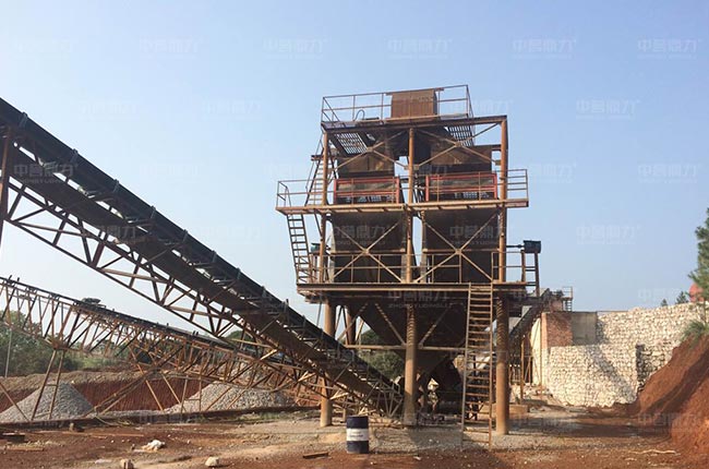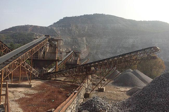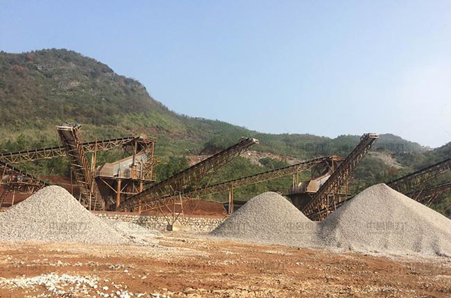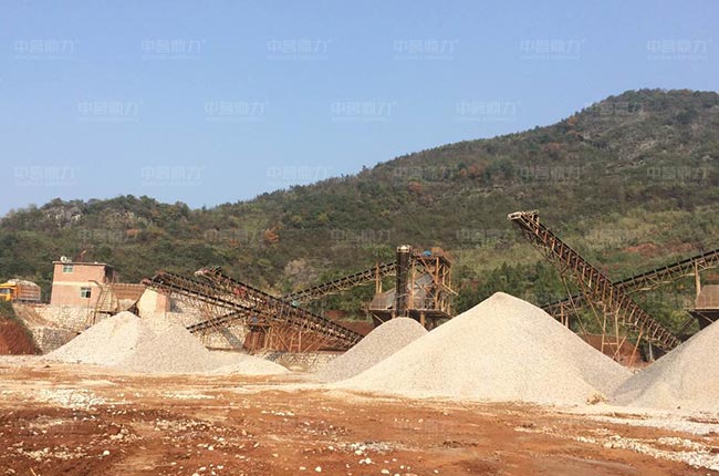 主要生產(chǎn)混凝土建筑用骨料,原料是石灰石、生產(chǎn)石粉、米石、5-10、10-20等規(guī)格的石料,選用一臺1615重錘破碎機(jī)和4臺YKZ振動篩,不需要二級破碎設(shè)備投資。