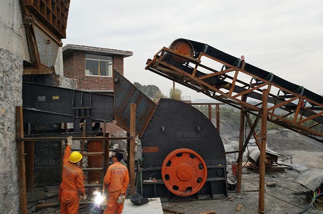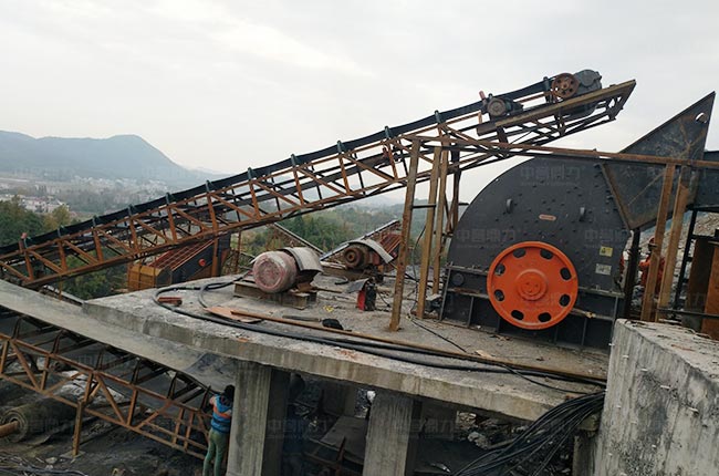 1、破碎階段:石灰石通過(guò)給料機(jī)進(jìn)入重型錘式破碎機(jī)進(jìn)行破碎,破碎后的物料會(huì)進(jìn)行初次篩分;