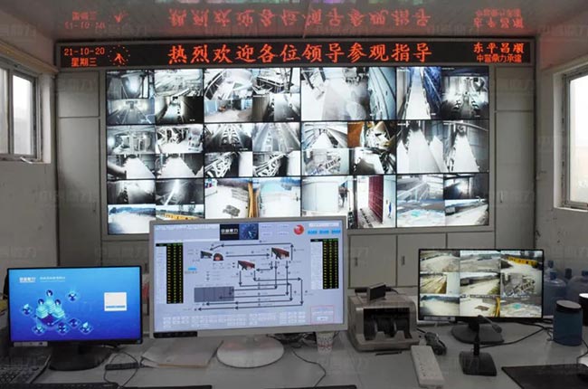 控制中心監(jiān)控大屏,顯示器為鼎力礦山管理系統(tǒng)操控界面