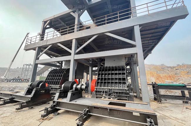 生產(chǎn)線頭破DLPCZ1820重型錘式反擊破碎機(jī)安裝現(xiàn)場(chǎng)