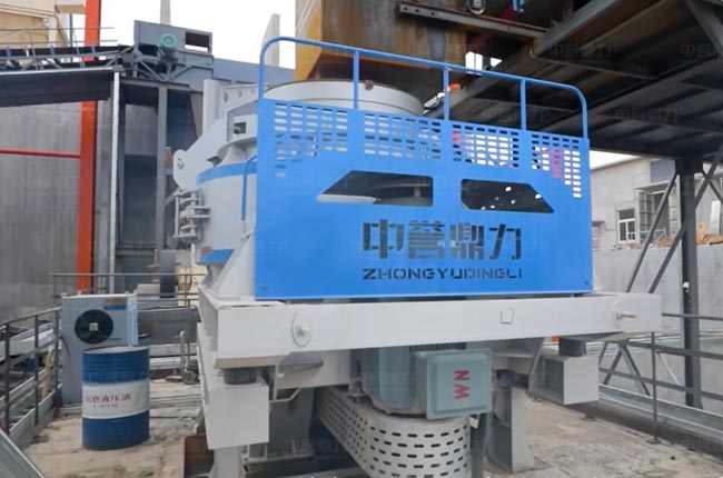棗莊泉石工貿(mào)該項(xiàng)目采用干法制砂工藝,全程無需水洗工序,流程為原料→投料→破碎→制砂→一次篩分→二次篩分。采用中譽(yù)鼎力DLVS1-1263沖擊式整形制砂機(jī),高效成型,提升砂石品質(zhì)。