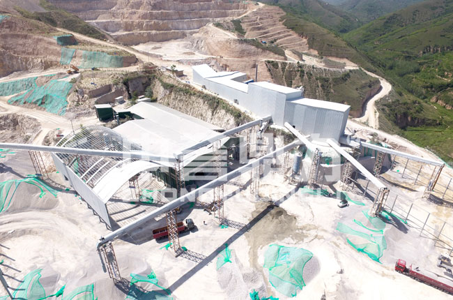 陜西銅川市弘鑫鈣業(yè)時產(chǎn)600噸骨料生產(chǎn)線采用設計工藝,集給料、破碎、篩分、存儲、環(huán)保于一體,以錘式破碎機作為主要破碎設備,其生產(chǎn)線生產(chǎn)加工流程短,可以將650mm以下的原石料進行破碎,比其余配置方案能節(jié)省30%的成本投入。