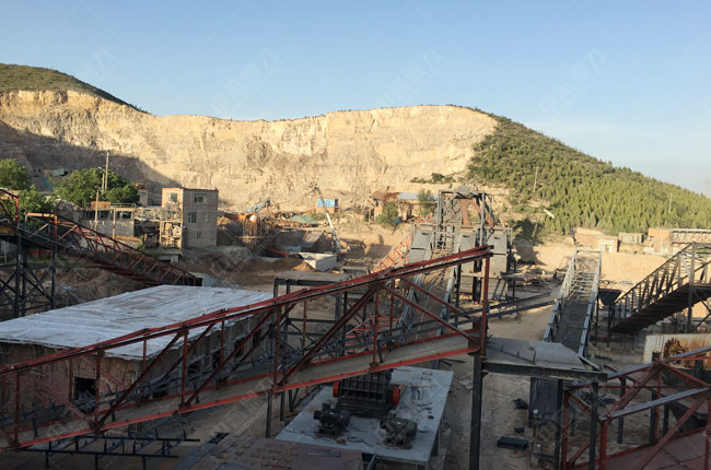 該項目主要加工中等、軟脆性石灰石物料,結合石灰石軟硬程度,為其配置了1820重錘式破碎機,以及1220整形錘式破碎機。整個生產線的設計簡單,所需設備較少,生產效率高,輕松實現時產1200噸的生產需求。
