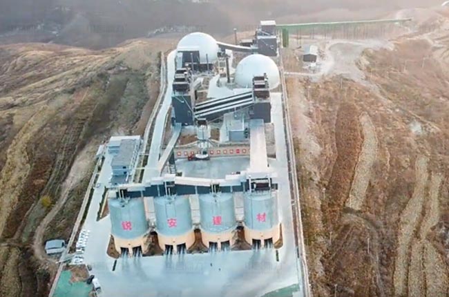 銳安建材秉承綠色發(fā)展理念,生產(chǎn)線整體采用封閉設(shè)計,26臺脈沖袋式除塵器、6臺風(fēng)力輸送設(shè)備、1.2公里的皮帶封閉長廊、灑水車、霧炮機(jī)等除塵措施,成品料儲存于4個大型筒倉,筒倉下智能放料裝車,從生產(chǎn)到銷售防塵多措并舉,實現(xiàn)“采石不見石、產(chǎn)塵不見塵”,項目不論從環(huán)保、自動化程度、產(chǎn)能等在當(dāng)?shù)囟际乔缚蓴?shù)的。