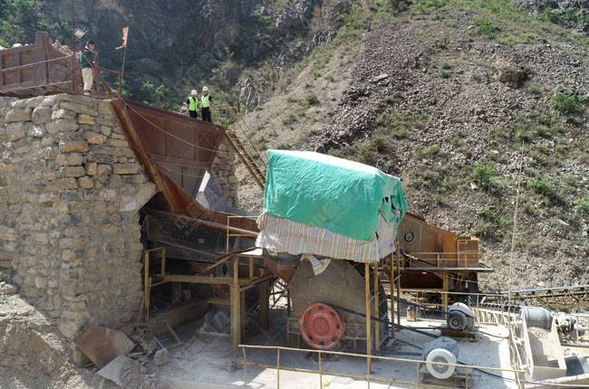 由于場(chǎng)地限制,石料粗碎環(huán)節(jié)是在石料開采區(qū),后將粗碎后的石料運(yùn)到石料廠進(jìn)行二次整形破碎,篩分,清洗等一系列加工。
