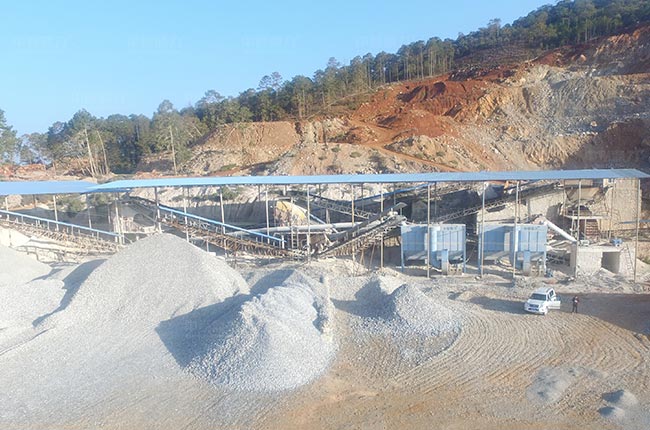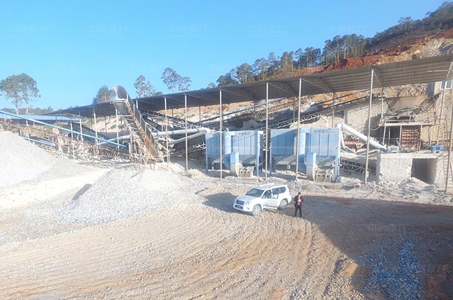 2、兩次破碎工藝,工藝簡單,還配置有收塵器、噴淋、灑水等環(huán)保裝置,減少粉塵飛揚。
