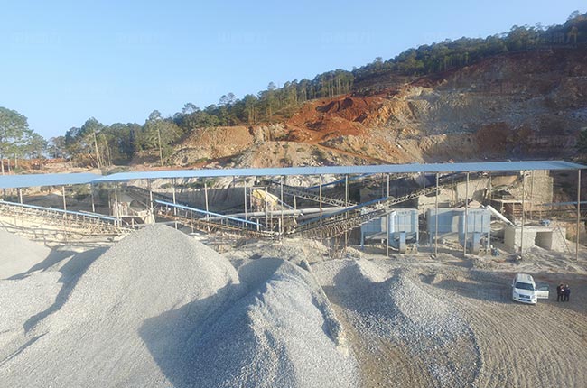 四川涼山時產(chǎn)1000噸砂石骨料生產(chǎn)線選用了PCZ1620重型錘破機+PC1220錘式破碎機+配套設備,加工后的碎石料有兩道篩分環(huán)節(jié),生產(chǎn)的骨料粒型好、規(guī)格多。
