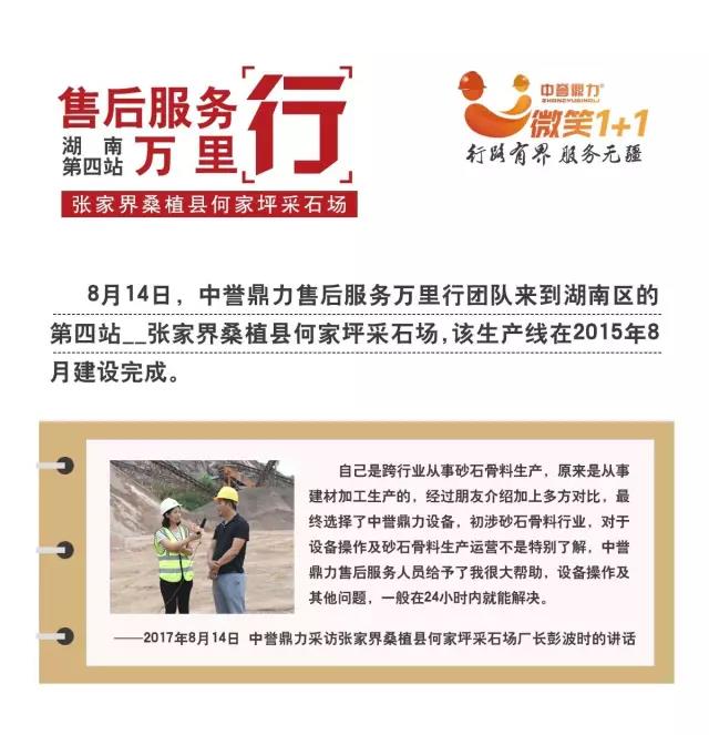 中譽(yù)鼎力湖南服務(wù)工程師郭學(xué)志說,對于初涉砂石骨料行業(yè)的用戶,中譽(yù)鼎力除了提供售后支持外,也會(huì)提供相應(yīng)服務(wù),比如行業(yè)情況講解,石料分析,生產(chǎn)線運(yùn)行管理,設(shè)備操作培訓(xùn)、保養(yǎng)培訓(xùn),不同自然天氣應(yīng)對等,生產(chǎn)線運(yùn)行正常,使用戶得到較高的率。