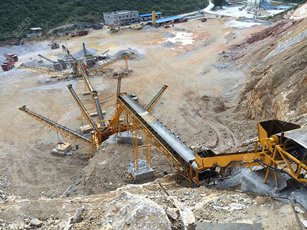 GYS300圓錐碎石機、4YK2160礦山振動篩 、GZD750×2500振動喂料機、B1000×30米、B800×31米運輸機等機械構(gòu)成。