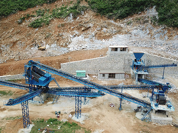 原料堆、ZSW490×110震動喂料機、HD98鄂破機、B1000×22米傳送機、HXHP300圓錐式破碎機、B1000×30米傳送機、B800×31米傳送機、4YK2460礦山振動篩、B500×15米傳送機(4臺)、B500×10米傳送機。
