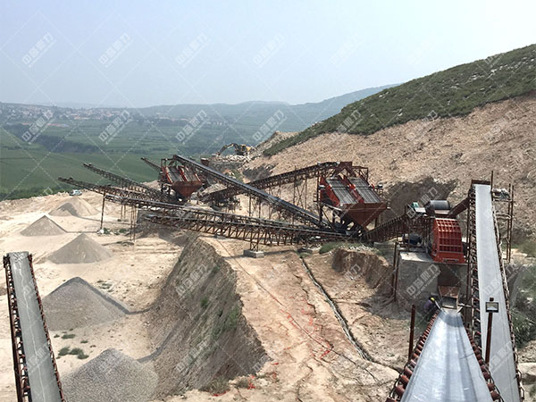 【小型碎石生產(chǎn)線工藝該如何設(shè)計?】在材料點距石子廠較近的狀況下,小型碎石生產(chǎn)線應(yīng)鄰近料場設(shè)置,以簡化大塊石頭運送環(huán)節(jié),運輸距離,技術(shù)設(shè)計應(yīng)力求集中緊湊、運送簡捷、盡量利用地形高差,粗碎設(shè)備(含受料堆)進(jìn)出料高差較大,為節(jié)約土石方開挖項目量,粗碎設(shè)備車間的位置滿意于選在斜坡上,依據(jù)通常經(jīng)驗,較為優(yōu)良的廠址山勢條件應(yīng)為上陡下緩的坡地,緩地段用在設(shè)計成品堆料場與出料公路,粗碎設(shè)備下料高程直與料場來料的運送途徑相適應(yīng),已免重車上坡,因為中整型破碎機(jī)械造型尺寸通常較小,加之機(jī)械臺數(shù)少,為物料傳送距離,預(yù)篩選分級與中整型破碎靖分產(chǎn)品應(yīng)由溜槽漏斗送至中制沙機(jī)粉碎,篩選分級與成品堆料環(huán)節(jié)好設(shè)計在有需高差的臺階地上,成品砂石料一次堆存入倉。